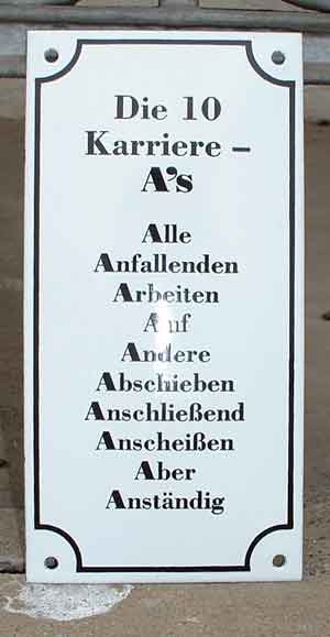 Die 10 Karriere A`s Emailleschild, gewölbt, 20 x 10 cm, kurios Zustand 1 40 Euro |