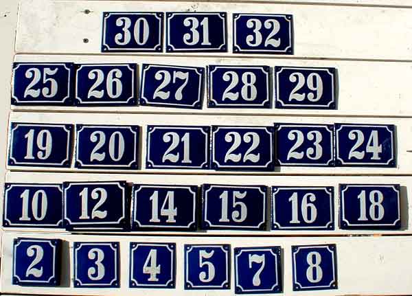 12 Ziffern kleine emaillierte Schilder, gewölbt, 6 x 12 cm, Zuckergußemail, auch einzeln, ideal für alte Schränke Zustand 1-2 Stück 20 Euro |