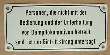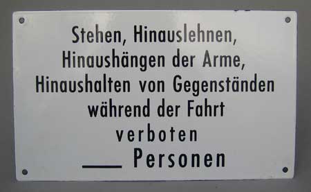 Unterhaltung mit dem Wagenführer ist nicht gestattet kleines Emailleschild, gewölbt, dick emailliert, 14 x 3 cm, Zustand 0 EURO 20,- inklusive Versand |