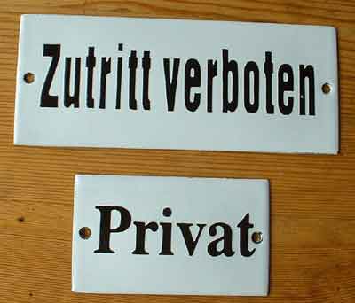 Hinweisschilder alle gewölbt, dick emailliert, alle so um 10 x 15 cm Zustand 1 Stück 40 €uro inklusive Porto |