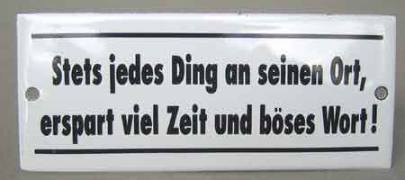 Nur der kleine Geist hält Ordnung - das Genie überblickt das Chaos kleines Emailleschild, gewölbt, dick emailliert, 10 x 7 cm, " " Zustand 0 EURO 25,- inklusive Versand |