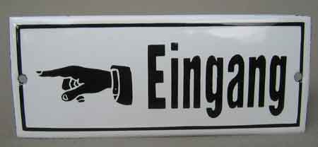 Eingang dick emaillierte Schildchen, gewölbt, mit dekorativer Hand, 17 x 7 cm, sehr schweres Blech Zustand 1 Stück 45 €uro |