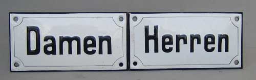 gewölbtes Emailschild mit missverständlichem Text Zustand 2 Stück 35 Euro |