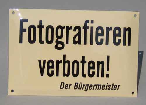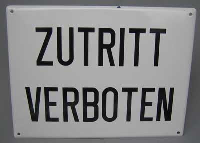 Verboten ... gewölbtes, dick emailliertes Verbotsschild, 32 x 20 cm, handsigniert, kurios, nach 1911 Zustand 2 EURO 80,- |