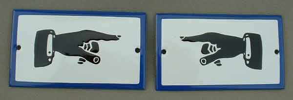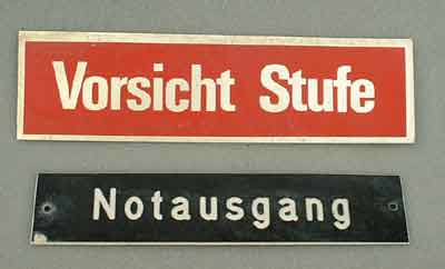 gewölbte Hinweisschilder, ca 12 x 6 cm Zustand 2 Stück 35 Euro |