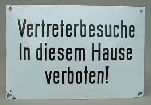 gewölbtes Emailschild mit kurioser Aufschrift, dick schabloniert, 18 x 10 cm Zustand 1 60 Euro |
