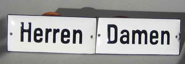 3 schöne Hinweisschilder 3 dick emaillierte Hinweisschilder, gewölbt, Zustand 1- Damen 30 €uro Männer 30 €uro Abfall 25 €uro |