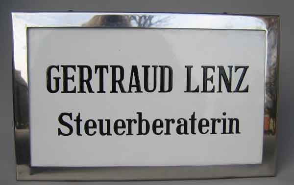 Emailschild, 20 x 30 cm, schabloniert, facettierter Rand Zustand 1 50 Euro |