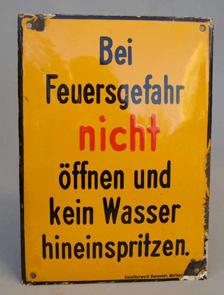 Ehrlich währt am längsten kleines Emailschild, leicht abgekantet, neuzeitlich, aber richtig gut emailliert, 30 x 21 cm Zustand 1 EURO 30,- |