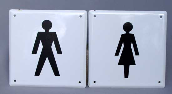 Toilette für Damen und Herren 2 Emailleschild mit den bekannten Symbolen, quadratisch, 22 x 22 cm, werden mit 8 Edelstahlschrauben und Dübeln geliefert Zustand 1 zusammen EURO 90 Euro |